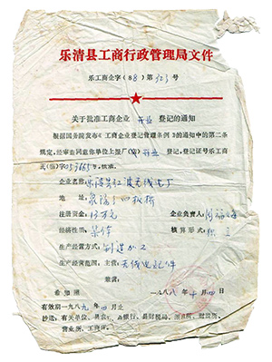 1988年成立乐清县红波无线电厂,企业性质为集体。政府文件号:乐工商企字(88)第323号